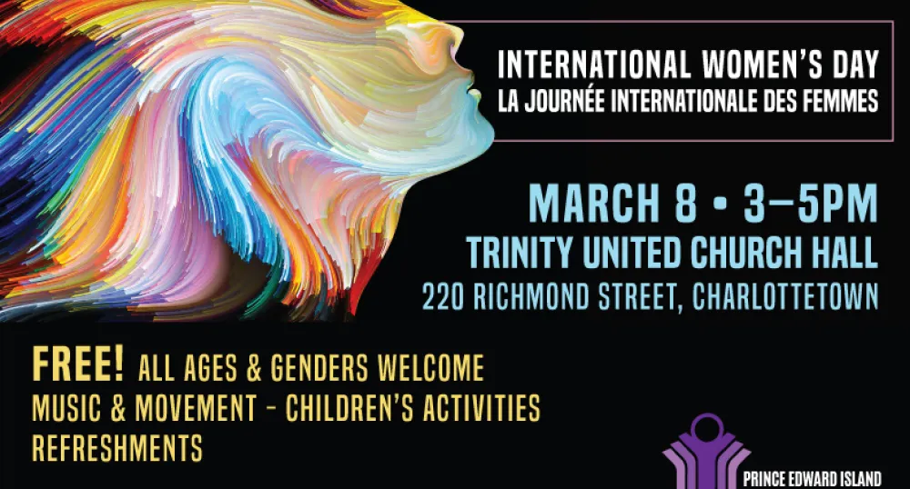 Une célébration aura lieu à Charlottetown le dimanche 8 mars, de 15 h à 17 h, à la salle de l’Église Trinity United, au 220, rue Richmond. Elle est organisée par un réseau d’organismes qui appuient les droits des femmes et qui contribuent à la promotion de l’égalité des genres. Les gens pourront chanter, faire de la musique, bouger et écouter des conférencières parler de leurs expériences diverses en tant que femmes. Des rafraîchissements seront servis. L’entrée est libre. Bienvenue aux gens de tout âge et de tout genre.