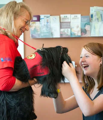 Therapy dog comforting patients in Queen Elizabeth Hospital Emergency Department